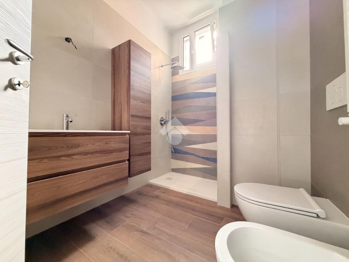 – Bagno finestrato con doccia walk-in e sanitari sospesi, lavatrice ed asciugatrice