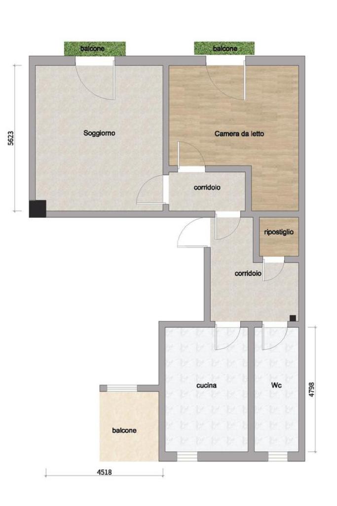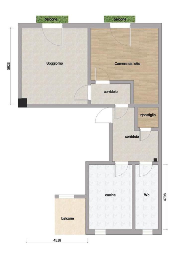L’ingresso si apre su un comodo disimpegno che conduce alla zona giorno, composta da soggiorno con balcone. La cucina è luminosa e finestrata. Proseguendo troviamo un pratico ripostiglio.